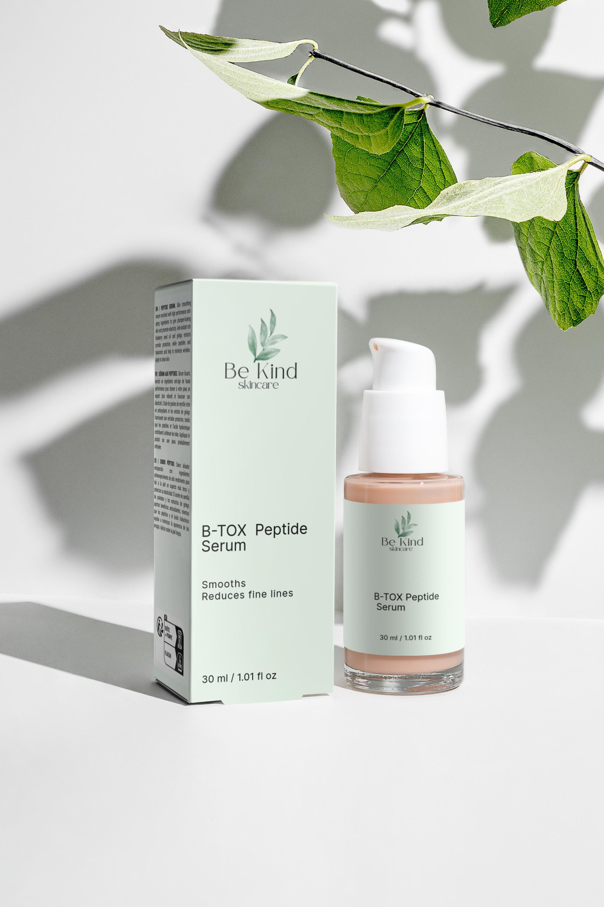What’s inside: * B-Tox Peptide Serum A high-performance serum infused with Peptides and Hyaluronic Acid. This formula helps to reduce the appearance of wrinkles, enhance skin elasticity, and provide deep hydration.